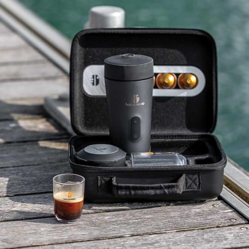 Handpresso Auto Set | cafetiere de voyage à batterie USB-C | capsule expresso & capsule réutilisable café moulu | malette compacte – cafetiere portable – 2 tasses – poubelle – cable USB – serviette