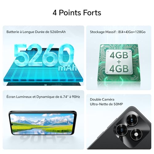 HONOR X5c Plus Smartphone Dual SIM NFC, 5260mAh Batterie, 4+128GB, 6.74 Pouces 90 Hzécran Confort Téléphone, Caméra 50 mégapixels, Android 15, MicroSD 1 to Extensible, Midnight Black