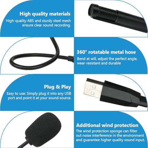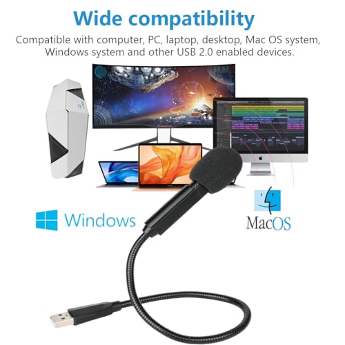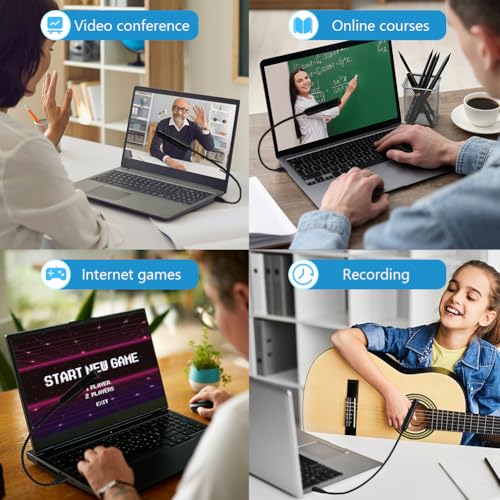 【Qualité sonore professionnelle】Ce microphone enfichable USB utilise une puce professionnelle pour fournir un son haute définition et une suppression du bruit. La directivité omnidirectionnelle capture les sons de toutes les directions de manière uniforme, garantissant que les voix claires sont capturées sans interférence du bruit actuel 【Microphone USB Plug and Play】connectez simplement le petit microphone USB à un ordinateur portable ou un PC doté d’un port USB-A et il est prêt à l’emploi. Aucune installation de pilotes ou de logiciels requise, alimenté par bus USB, aucune alimentation/batterie externe requise, remplacement parfait pour le microphone intégré de votre ordinateur portable 【Col de cygne réglable】Le col de cygne réglable USB du microphone est fabriqué en métal de haute qualité et peut être librement ajusté en hauteur et en angle pour enregistrer le son à 360°. Vous pouvez facilement le déplacer dans la position souhaitée sans avoir besoin de câbles ni de prises supplémentaires 【Durable et léger】Ce microphone pour ordinateur portable est fabriqué en ABS de haute qualité et en tube métallique, qui présente une excellente durabilité et un effet de protection contre les interférences. Conception petite et compacte, facile à transporter et à ranger sans prendre beaucoup de place 【Largement utilisé】Ce microphone USB à prise directe est très approprié pour le home studio, le chat, la conférence, Skype, MSN, l’enregistrement Yahoo, YouTube, le podcasting et d’autres fins. Remarque : Il n’y a pas de bouton de sourdine en ligne, vous pouvez régler le volume soit sur l’appareil, soit via le logiciel Windows