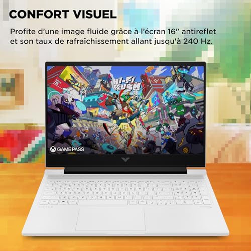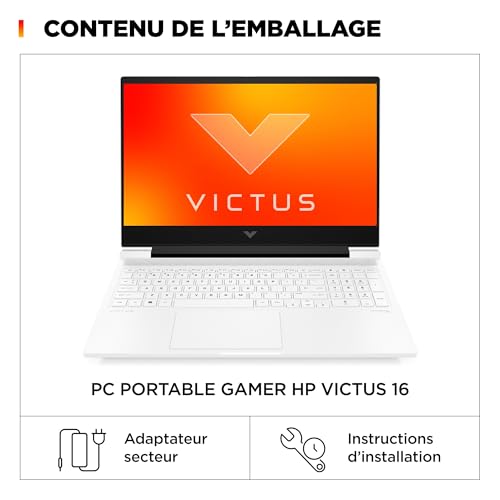 HP Victus 16-r1001sf Ordinateur Portable Gaming 16″ FHD IPS 144 Hz, PC Portable Gamer (Intel Core i7-14650HX, RAM 16 Go, SSD 512 Go, Nvidia GeForce RTX 4070 8Go, Windows 11), Laptop Blanc, AZERTY