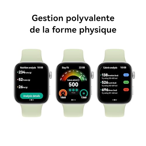 Affichage somptueux: 1,82 pouce Écran AMOLED, 1 500 nits Luminosité maximale, 347 PPI Vision saisissante,des bordures très étroites et un rapport écran/corps de 77,4 % vous aspirent dans un monde visuel vibrant qui reste clair comme le jour, même sous la lumière directe du soleil, avec un taux de rafraîchissement de 60 Hz et une luminosité auto-ajustable. Design ultra-fin:La nouvelle HUAWEI WATCH FIT 3 est une montre intelligente ultra-mince de seulement 9,9 mm et 26 g. Son boîtier en alliage d’aluminium et sa boucle en métal lisse sont tout simplement remarquables et un plaisir pour les yeux. Gestion polyvalente de la forme physique:Suivez les calories brûlées et absorbées pour manger sainement et rester en forme plus facilement que jamais Gestion complète de la santé:Surveillez votre fréquence cardiaque, votre SpO2, votre fréquence respiratoire et les respirations anormales pendant que vous dormez, pour une tranquillité d’esprit permanente. Batterie longue durée:Avec jusqu’à 10 jours d’autonomie, et une semaine complète dans la plupart des cas, vous pouvez vaquer à vos occupations en toute sérénité. Compatible avec iOS et Android:Le HUAWEI WATCH FIT 3 est compatible avec iOS et Android, pour une plus grande facilité d’utilisation. FIT 3: DAS tête : 0.07 W/kg ; DAS tronc : 0.13 W/kg ; DAS membres : 0.19 W/kg Le débit d’absorption spécifique (DAS) local quantifie l’exposition de l’utilisateurs aux ondes électromagnétiques de l’équipement concerné. Le DAS maximal autorisé est de 2 W/Kg pour la tête et le tronc et de 4 W/Kg pour les membres.