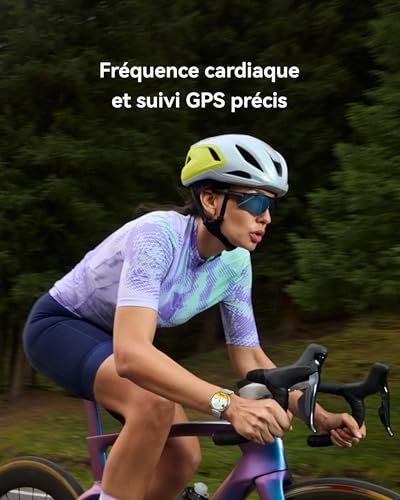 GPS ultra précis et Suivi du rythme cardiaque: Le système amélioré HUAWEI Sunflower Positioning System offre une précision de positionnement accrue de 20 % grâce à des algorithmes GNSS et une architecture d’antenne optimisé. Synchronisez vos données de fréquence cardiaque avec le compteur de vélo pour une analyse fluide en un coup d’œil (Tour de poignet : 120–180 mm) Jusqu’à 14 jours d’autonomie: Endurance signature puissante avec une autonomie pouvant atteindre 14 jours. Grâce à l’adoption innovante d’une batterie à haute teneur en silicium, la densité énergétique augmente de 37 %. Laissez les craintes liées à l’autonomie derrière vous et établissez de nouveaux records. Simulation de puissance de pédalage: Laissez tomber votre capteur de puissance. Appuyez sur la fonctionnalité Puissance virtuelle de cyclisme qui surveille la puissance en temps réel et moyenne pour ajuster l’intensité de votre entraînement. Design icônique : L’écran AMOLED de 1,32 pouce offre une surface d’affichage 5,5 % plus grande pour une meilleure immersion. La luminosité est multipliée par 1,5, atteignant jusqu’à 3 000 nits, et garantissant ainsi une lisibilité optimale même en plein soleil. Bien-être émotionnel: La montre classe vos émotions en 12 types d’états subtils à travers différentes dimensions, qui sont représentés sous diverses formes de fleurs. Cultivez vos graines émotionnelles et laissez-les s’épanouir. Large compatibilité: La HUAWEI WATCH GT 6 fonctionne avec iOS et Android, pour une plus grande facilité d’utilisation