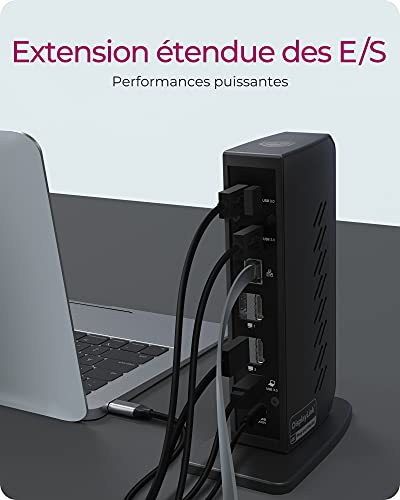 RaidSonic ICY BOX IB-DK2252AC DisplayLink Notebook Docking SUPPORT PRATIQUE : Grâce à son support extrêmement robuste, la station d’accueil peut être installée verticalement et reste stable même lorsque toutes les interfaces sont connectées par des câbles. Le positionnement vertical libère de l’espace sur votre bureau Boîtier externe