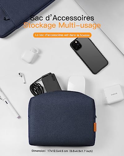 Dimensions intérieures 37,5 x 25,8 x 3 cm. Compatible avec la plupart des ordinateurs portables de 15 à 15,6 pouces Matériel à 5 Couches : Housse de protection durable avec ses 5 couches de matériel – polyester, doublure en peluche, EPE, EVA et tissu non tissé. Vous pouvez ainsi porter votre appareil sans souci Résistant aux éclaboussures : Tissu externe est en polyester résistant à l’usure, aux plis et à l’éclaboussement. En cas d’éclaboussement inattendu, vous pouvez tout simplement essuyer les gouttes d’eau Grande Poche d’Accessoires Fournie : Il y a une autre housse (19*15,5*6 cm) fournie pour votre adaptateur d’alimentation, câbles, souris, stylos et d’autres articles, vous pouvez facilement les porter et trouver Zip à Double Curseur : Zips de haute qualité, durable et solide. Tout pour un usage pratique et agréable