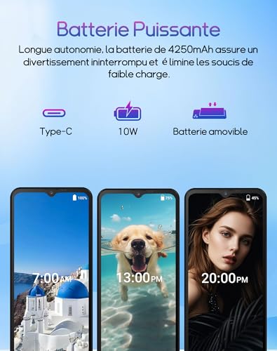 【Batterie longue durée 4250mAh pour vos journées bien remplies】Le INVENS NOTE TK01 intègre une batterie puissante de 4250mAh qui vous accompagne toute la journée sans recharge fréquente. Que ce soit pour téléphoner, naviguer sur les réseaux sociaux, utiliser le GPS ou regarder des vidéos, vous restez connecté en toute sérénité. Un choix idéal pour les travailleurs, les ados et les seniors recherchant fiabilité et autonomie. 【Grand écran HD+ 6,52″ – Confort visuel optimal】Profitez d’une expérience immersive grâce à l’écran HD+ de 6,52 pouces, parfait pour visionner vos vidéos, lire des messages ou faire défiler des photos. Son grand format et sa clarté sont appréciés par les seniors ayant besoin d’un meilleur confort de lecture, mais aussi par les jeunes amateurs de divertissement mobile. Idéal pour l’apprentissage et les loisirs. 【Appareil photo 16MP + selfie 5MP pour vos instants du quotidien】Immortalisez vos meilleurs souvenirs avec l’appareil arrière de 16MP, que ce soit en famille, en extérieur ou en déplacement. La caméra frontale de 5MP offre des selfies nets et des appels vidéo fluides. Que vous soyez débutant en photographie ou simplement désireux de rester connecté en image, le téléphones portables vous simplifie la vie avec style. 【Sécurité et fluidité grâce à Face ID et processeur Octa-Core】Déverrouillez votre téléphone facilement grâce à la reconnaissance faciale sécurisée – plus besoin de mots de passe. Avec un processeur Octa-Core efficace et 4Go de RAM, profitez d’un fonctionnement rapide, d’une navigation fluide et d’une gestion multitâche sans accroc. Parfait pour les seniors, étudiants ou utilisateurs novices. 【4G débloqué, double SIM + support OTG pour plus de flexibilité】Le telephone portable pas cher accepte deux cartes SIM – idéal pour séparer vie personnelle et professionnelle. Avec la fonction OTG, vous pouvez connecter clés USB, claviers ou autres accessoires. Un smartphone complet pour vos trajets, le travail ou un usage quotidien tout en souplesse.