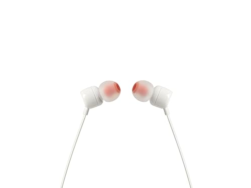 JBL Tune110 – Ecouteurs intra-auriculaires filaires – Son Pure Bass de JBL et bouton de contrôle – Connectivité : câble Jack 3,5 mm – Couleur : Blanc