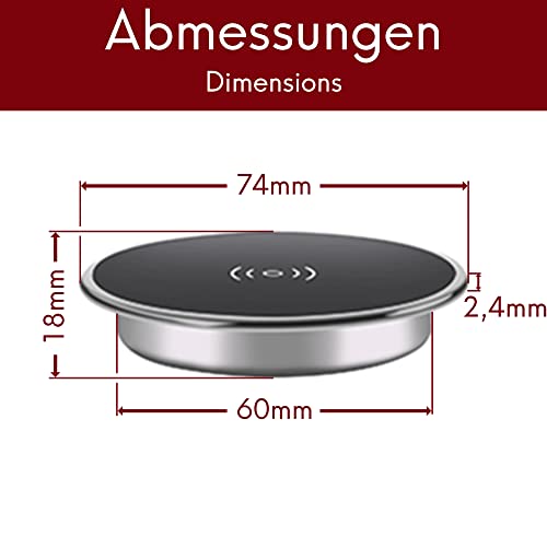 ★ Entièrement intégré : le chargeur est intégré dans le meuble et fait ainsi partie du design ★ Charge rapide : le chargeur a une sortie de 20 W, ce qui vous permet de profiter d’une véritable charge rapide dans le domaine Qi ★ PROTECTION : l’appareil répond à la norme IP20 ★ Universel : le chargeur peut être utilisé dans de nombreux concepts de vie et d’espace, que ce soit dans le salon, la cuisine ou le bureau ★ Informations : dimensions : Ø 74 mm, max. Distance de charge : 6 mm ★ Contenu de la livraison ★ Chargeur Qi + bloc d’alimentation USB + accessoires de montage