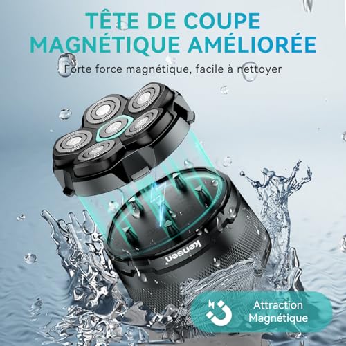 🔋【160 mins d’autonomie】🔋kensen rasoir crane homme chauve sont équipés d’une puissante batterie lithium-ion intégrée et d’un port Type-C, qui ne nécessite que deux heures de charge pour jusqu’à 160 minutes d’utilisation sans fil n’importe où, n’importe quand et durent plus longtemps que les autres modèles de tondeuse chauve. ✨【Tête de rasage flottante 6D améliorée】✨La tête de kensen rasoirs à têtes rotatives homme utilise la technologie de flottement précis 6D, s’adaptant automatiquement dans toutes les directions pour épouser la forme de votre tête, visage et cou. Les lames incurvées réduisent les frottements pendant le rasage et préviennent les irritations et les rougeurs. Notre tondeuse crane chauve garantit une expérience de rasage douce, efficace et sans effort. 💧【Design étanche intégral】💧kensen tondeuse cheveux hommes chauve est conçu avec une protection étanche de niveau IPX6, permettant une utilisation en toute sécurité sous la douche. Profitez d’un rasage à sec confortable ou d’un rasage frais et humide avec une mousse à raser. ✨【Écran LED et verrou de voyage】✨L’écran LED du tondeuse crane chauve affiche l’état de la batterie et le temps d’utilisation restant. Une pression prolongée sur le bouton d’alimentation active le verrouillage de voyage pour éviter tout contact accidentel et toute consommation d’énergie supplémentaire. Si vous rencontrez des problèmes lors de l’utilisation du rasoir tondeuse homme, n’hésitez pas à nous contacter. Nous offrons une garantie d’un an. 👍【Facile à nettoyer】👍kensen rasoir cheveux hommes tête chauve est doté d’une nouvelle conception magnétique amovible améliorée pour la lame. Vous pouvez détacher facilement toute la tête pour un nettoyage en profondeur. Après le nettoyage, alignez simplement les encoches sur le corps du rasoir tete chauve homme pour remettre la tête en place rapidement. De plus, il est important de retirer les résidus de cheveux après chaque utilisation pour maintenir le rasoir electriques dans un état optimal. ☎️【SERVICE KENSEN】☎️KENSEN est fier de fournir des produits de haute qualité et un excellent service client. Kensen offrons une garantie d’un an et un support technique à vie pour vous assurer la meilleure expérience d’achat. Si vous avez des questions, n’hésitez pas à nous contacter. Nous vous aiderons dans les plus brefs délais. Remarque : Veuillez charger complètement le rasoir cheveux hommes tête chauve avant la première utilisation. Remarque : Cet appareil convient aux poils de moins de 5 mm. Veuillez nettoyer soigneusement la tête de rasage à l’eau tiède une fois par semaine pour éviter l’accumulation de résidus et l’obstruction de l’appareil. Le sens de pousse des poils étant variable, il est recommandé de raser en mouvements circulaires et d’exercer une légère pression pour un rasage doux et net.