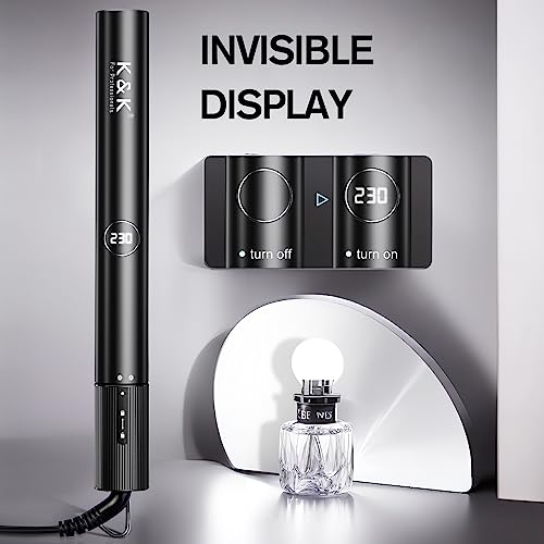 K&K lisseur Cheveux professionnel 2 en 1 et Fer à lisser boucleur 100% de titane pur avec plaque en céramique nano-tourmaline de revêtement fer plat de 130 à 230°C