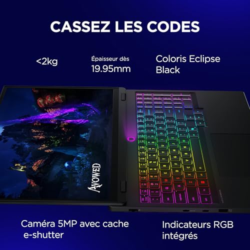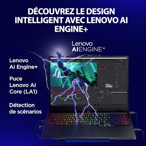 Lenovo PureSight OLED Gaming : Profitez d’un jeu en haute fidélité, d’une précision des couleurs exceptionnelle et d’une autonomie prolongée. Des temps de réponse rapides, des taux de rafraîchissement flexibles et des ajustements pilotés par l’IA garantissent des visuels nets et fluides. La technologie anti-burn-in assure des performances durables. Expérience de jeu ultra-silencieuse : Legion Coldfront: Hyper maintient votre système au frais grâce à des ventilateurs turbo, des caloducs 3D et un réglage intelligent par IA. Changez de mode avec Fn+Q, tandis que Acoustic AI Sound Sync ajuste ls performances pour un jeu fluide et un travail STEM optimal. Profitez de 3 mois de PC Game Pass : Jouez à des centaines de jeux PC de haute qualité avec votre nouvel appareil Lenovo Legion et bénéficiez de 3 mois de PC Game Pass. Brisez les codes : Élégant et sobre en Eclipse Black. Il est 13 % plus léger et plus fin qu’avant, avec une finition gravée au laser, une caméra avec E-Shutter et des indicateurs RGB qui affichent instantanément votre mode de performance. Explorez vos passions, élevez votre jeu : Équipé de technologies optimisées par l’IA, de processeurs Intel Core i7 et de cartes graphiques NVIDIA GeForce RTX série 5070 pour ordinateurs portables, il excelle en jeu, en streaming et pour les études. Parfait pour jouer et étudier où que vous soyez.
