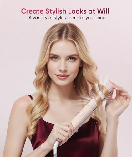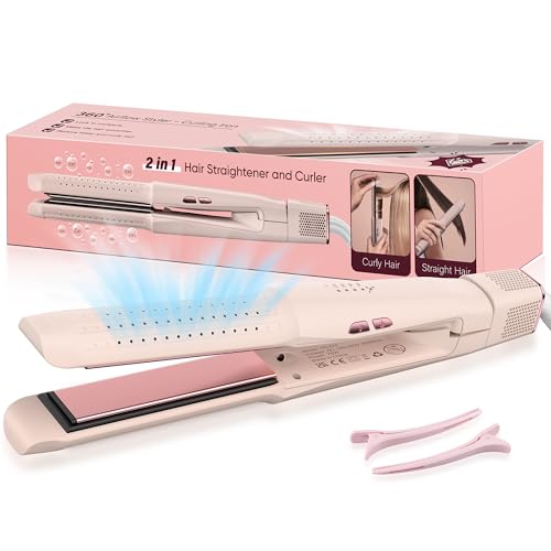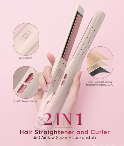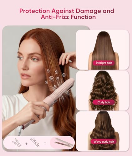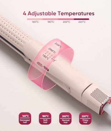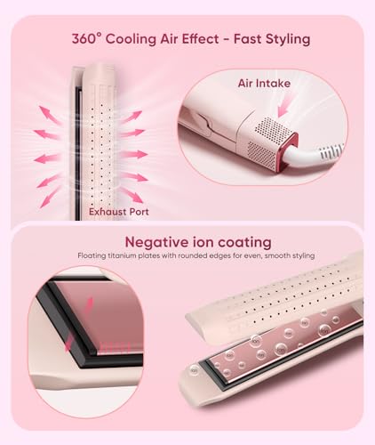 Lisseur Cheveux & Fer à Boucler 2 en 1 à Air Frais Rapid 360°, Fer à Lisser Portable Durables, Ions Négatifs pour Briller Sans Brûler, 4 Réglages de Température (160°C-220°C), Rose Girly