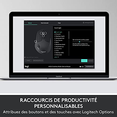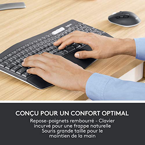 Cliquez-ici pour vous assurer de la compatibilité de ce produit avec votre modèle Une Souris Ultra-Rapide: La souris profilée MK850 de Logitech dotée d’une roulette de défilement ultra-rapide vous permet de parcourir les documents à une vitesse incroyable .Résolution du capteur : 1000 dpi Technologie Easy-Switch: Avec Easy-Switch pour clavier et souris Logitech, vous pouvez saisir un texte sur votre ordinateur puis passer sur votre smartphone ou votre tablette Option Logitech Duolink: L’option à télécharger sur votre PC ou Mac Logitech DuoLink lie l’ensemble clavier et souris sans fil pour des fonctionnalités personnalisées sous Windows et sous Apple