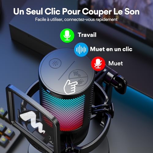 | Caractéristiques spéciales | Annulation du bruit à une touche, lumières RGB contrôlables, muet en un clic, contrôle du gain du micro, surveillance zéro latence, Plug and Play |