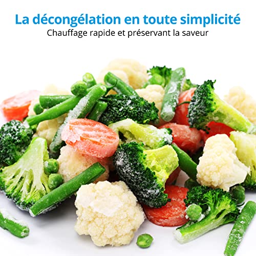 | Particularités | Décongélation, Fonction gril, Minuteur, Plaque tournante, Programmable |