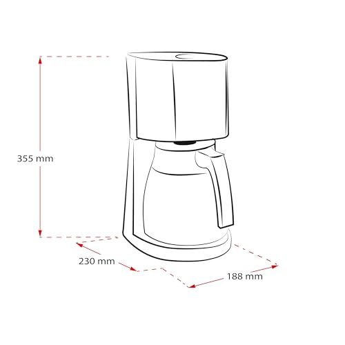 Réveillez-vous avec une tasse de café doux ou corsé et riche en arôme, Réservoir dâ€eau à double graduation pour 8 grandes tasses (125ml) ou 12 petites tasses (85ml) Goût exceptionnel : la température de préparation optimale, Intensité du café ajustable grce au sélecteur dâ€arôme, Maintien du café au chaud pendant 2 heures grce à la verseuse isotherme à double paroi intérieure en verre Verseuse utilisable dâ€une seule main, Couvercle et porte-filtre anti-gouttes, Compatible avec les filtres 1×4, Bouton OnOff lumineux Nettoyage facile grce au couvercle EasyClick, Porte-filtre pivotant amovible et lavable au lave-vaisselle, Arrêt automatique, 1000 W, Conçu en Allemagne Contenu : 1 Cafetière à filtre Melitta Enjoy Therm, Noir, 1017-06, 5 filtres à café Original blanc Melitta, Poids : 1,92 kg, Dimensions (lxHxP) : 23 x 36 x 19 cm, Longueur du cble 90 cm