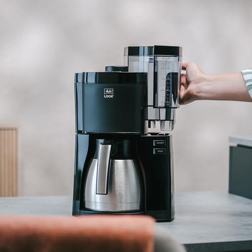 Melitta, Cafetière Filtre LOOK V Therm 1,25L Noir/Acier, Fonction AromaSelector, Fonction Minuteur, Porte-filtres 1×4, 10 Tasses, Verseuse Isotherme,1025-18,1080W