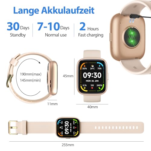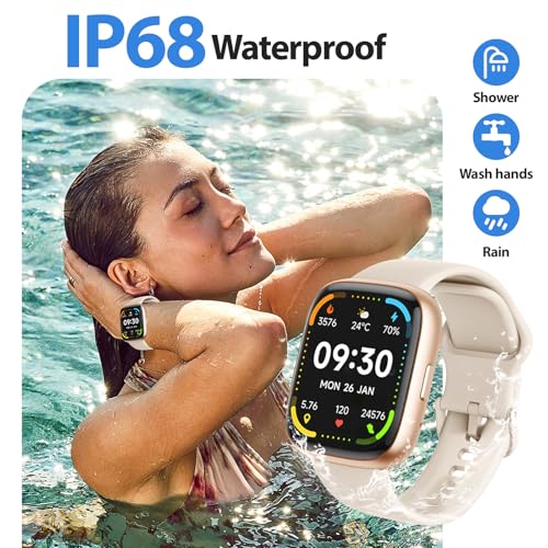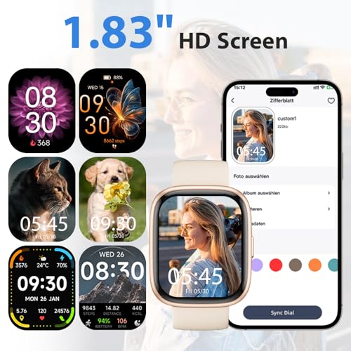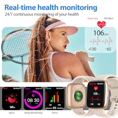 Montre Femme Homme Connectée: La montre sport utilise des capteurs avancés pour surveiller en permanence le rythme cardiaque, les niveaux d’oxygène dans le sang (SpO2), le stress et le sommeil (sommeil profond/sommeil léger) en temps réel, 24 heures sur 24. D’autres fonctions incluent le suivi du cycle menstruel, des rappels de consommation d’eau et des rappels d’activité pour vous aider à mener un mode de vie plus sain Alertes d’appels et de messages Bluetooth : Restez connecté avec l’application VeryFit pour recevoir et passer des appels directement depuis votre smartwatch. Recevez des notifications d’applications telles que WhatsApp et SMS pour vous assurer de ne manquer aucun message important. Réglez les paramètres de son et de vibration à votre convenance et utilisez le mode « Ne pas déranger » pour vous concentrer sans distraction. Conseil : la réponse par SMS n’est pas prise en charge 100 modes sportifs et étanchéité IP68 : Cette montre de sport comprend 100 modes sportifs tels que la course à pied, la randonnée, le basket-ball, l’aviron, l’escalade, le cyclisme, le football, le yoga et bien plus encore. Notre montre de fitness est également résistante à l’eau IP68, ce qui signifie que vous pouvez la porter dans la vie de tous les jours, mais ne plongez pas avec votre montre de sport. Ne portez pas votre montre de sport dans l’eau de mer ou l’eau chaude Longue durée de vie de la batterie : Se rechargeant en seulement 2 heures, cette smartwatch offre 7 à 10 jours d’utilisation quotidienne et 30 jours d’autonomie en veille avec de nombreuses fonctionnalités utiles (réveil, assistant vocal, chronomètre, contrôle de la musique, prévisions météorologiques, rappel sédentaire, etc.), et est compatible avec iOS 9.0 et Android 6.0 et supérieur pour une connectivité transparente avec votre appareil Montre intelligente Alexa : vous pouvez utiliser Alexa à son plein potentiel à votre poignet. Réveillez Alexa en appuyant longuement sur le bouton marche/arrêt ou en touchant l’icône pour parler à votre montre afin de poser des questions, de régler des alarmes, de contrôler la lecture de musique, de vérifier la météo et de gérer les appareils intelligents compatibles avec Alexa, rendant ainsi votre vie quotidienne plus efficace et plus pratique. Écran HD de 1,83 pouce et cadran DIY : la smartwatch est dotée d’un écran HD de 1,83 pouce avec une résolution de 360° x 440, ce qui vous permet de profiter d’images plus claires que jamais. Plus de 100 styles de cadrans sont pris en charge pour répondre à vos besoins personnalisés. (La longueur du bracelet en silicone est de 22 mm, ajustable de 5,9 pouces à 8,5 pouces, et ne pèse que 38 g)