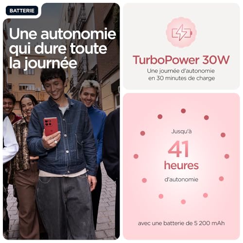 Écran OLED immersif 6,67” – Super HD, fluidité 120 Hz pour une expérience visuelle exceptionnelle Double capteur photo 50 MP – Avec intelligence artificielle et stabilisation optique pour des clichés nets et précis Batterie longue durée – Recharge rapide 30W pour une autonomie prolongée au quotidien Design robuste et étanche – Conçu pour résister à l’eau et aux aléas du quotidien Contenu de la boîte: Coque de protection, Câble USB type-C