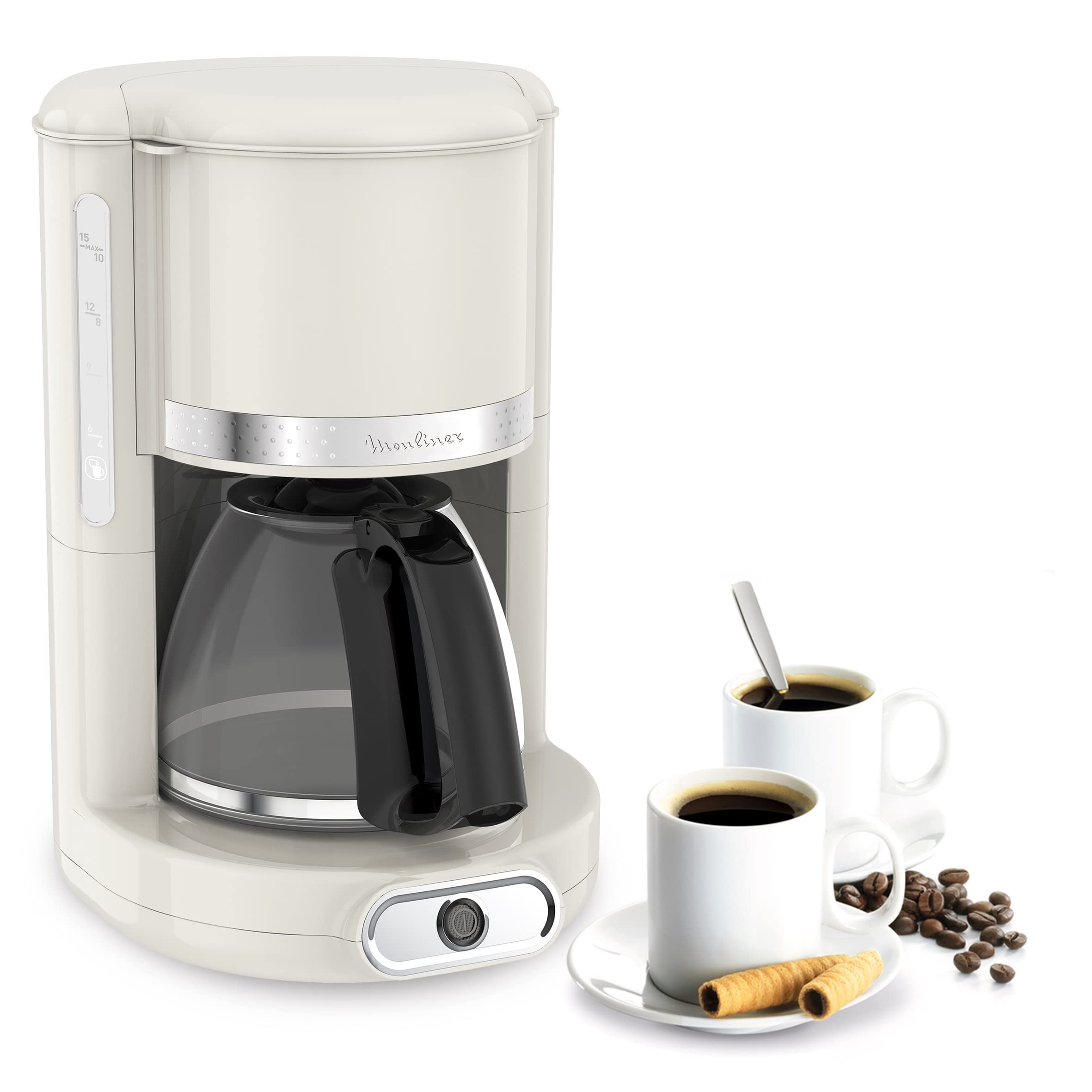 Moulinex Cafetière filtre Soleil, Design ivoire vintage, Capacité 1,25 L, 10 à 15 tasses, Porte-filtre pivotant pratique, Maintien au chaud 30 min, Verseuse en verre, Soleil FG381A10