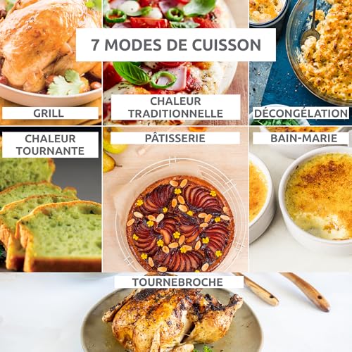 FOUR HAUTE PERFORMANCE : mini four électrique à chaleur tournante, parfait pour réaliser tous types de plats CUISSON RAPIDE ET HOMOMGENE : grâce à la fonction chaleur tournante, obtenez des résultats de cuisson parfaits en un rien de temps 7 MODES DE CUISSON : chaleur tournante, chaleur traditionnelle, gril, pâtisserie,…