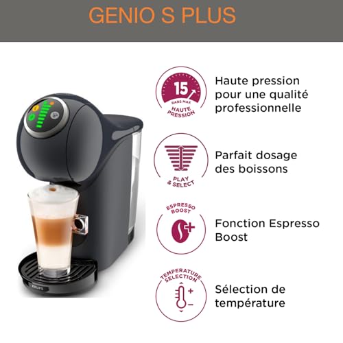 DESIGN COMPACT ET SOPHISTIQUÉ : une machine à café haute pression (jusqu’à 15 bars) pour des boissons de qualité professionnelle nappées d’une crème épaisse veloutée en moins de 30 secondes CAPSULES EXPRESSO : une cafetière à dosette compatible avec les capsules NESCAFÉ Dolce Gusto POLYVALENCE : préparation rapide et facile de plus de 30 boissons à base de café, ainsi que d’autres boissons chaudes et froides créées en appuyant sur un bouton TAILLES SUR MESURE : la fonction XL propose des tailles de boissons ajustables, pour des cafés courts à des cafés XL (jusqu’à 300 ml). Il vous suffit de tourner l’anneau de contrôle à LED intuitif pour choisir votre taille préférée RÉPARABILITÉ 15 ANS AU JUSTE PRIX : Engagement de réparabilité 15 ans au juste prix grâce à notre réseau de 6200 réparateurs dans le monde, pour contribuer à la protection de l’environnement et à la réduction des déchets TEMPÉRATURES PERSONNALISÉES : le contrôle de température avancé vous permet d’aller plus loin dans la personnalisation avec votre sélection de quatre réglages de température GOÛT INTENSE : la technologie Espresso Boost permet de préparer un expresso encore plus intense et concentré, comme un ristretto NETTOYAGE FACILE : le réservoir d’eau amovible de 0,8 L garantit un nettoyage facile, avec une alerte de détartrage à LED automatique qui vous indique à quel moment un détartrage de la machine est nécessaire ÉCONOMIES D’ÉNERGIE : la fonction Mode éco éteint automatiquement la cafetière après 1 minute d’inactivité
