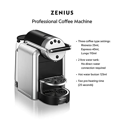 La bonne solution qui répond à vos besoins – Idéal pour toute petite entreprise, de l’expresso classique au latte bien-aimé – le tout en appuyant sur un bouton avec la machine à café professionnelle Nespresso Rapide et efficace : café et eau chaude exceptionnels rapidement avec un temps de chauffe de 25 secondes. Aucune alimentation directe en eau nécessaire. Trois options de taille de café : Ristretto (25 ml), Espresso (40 ml) et Lungo (110 ml) pour une machine à expresso idéale et pour préparer des recettes de café au lait de style barista de manière facile et rapide. Alerte de détartrage pour un entretien facile. Un choix plus durable et pratique : infuser une tasse de café Nespresso utilise une quantité précise de café moulu, d’eau et d’énergie, réduisant l’empreinte carbone par tasse. Les capsules en aluminium sont entièrement recyclables et peuvent avoir une seconde vie. NESPRESSO Capsules professionnelles : 50 capsules Intenso Nespresso sont incluses dans cette offre, fabriquées à partir des grains les plus fins et les plus rares, provenant de sources durables Garantie : la machine Zenius Professional a une garantie de 12 mois.
