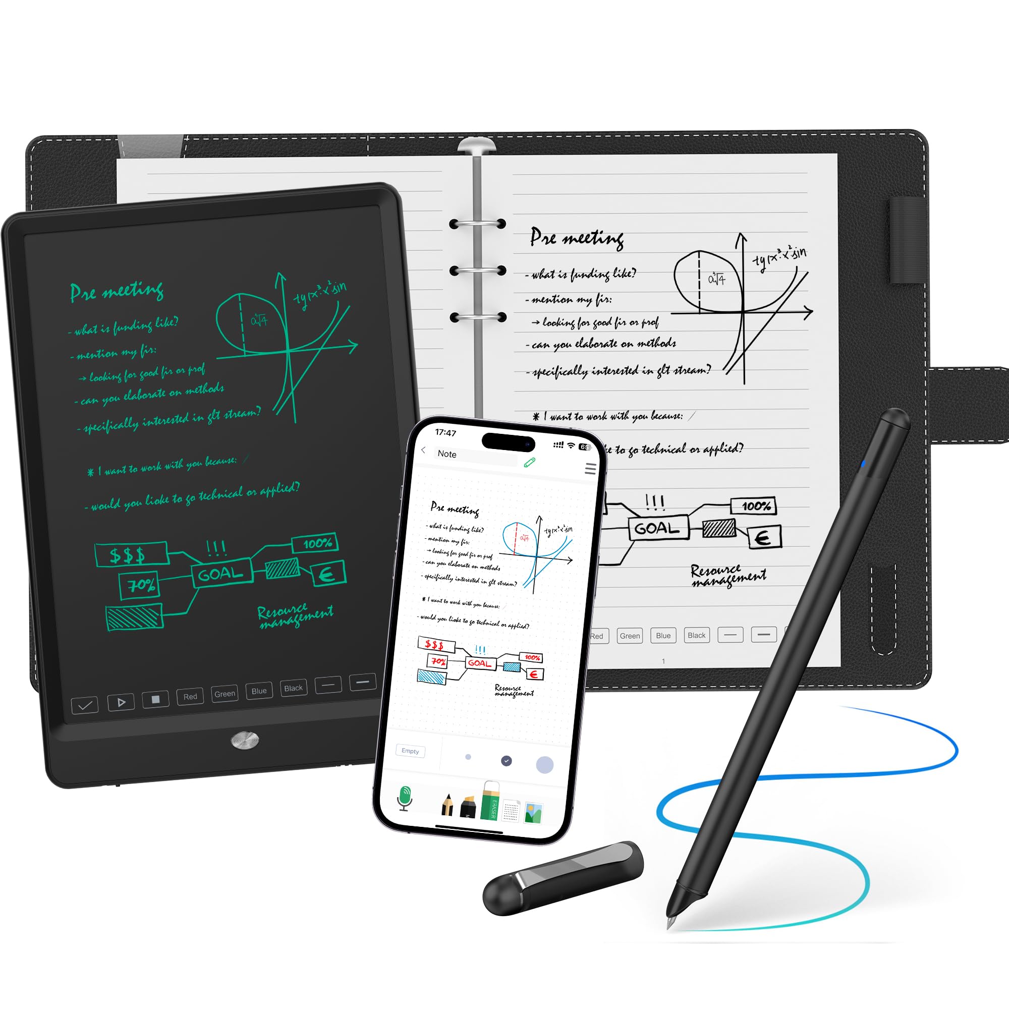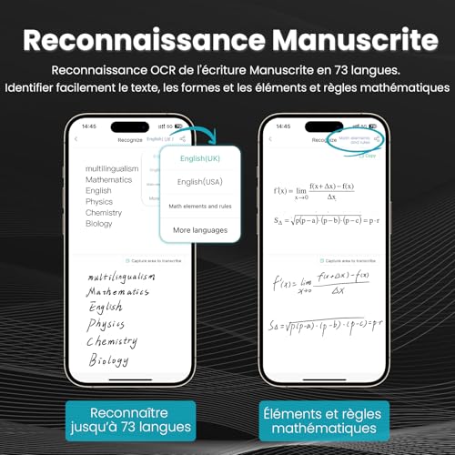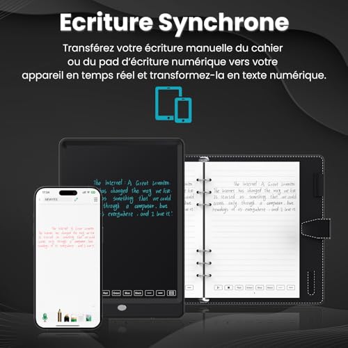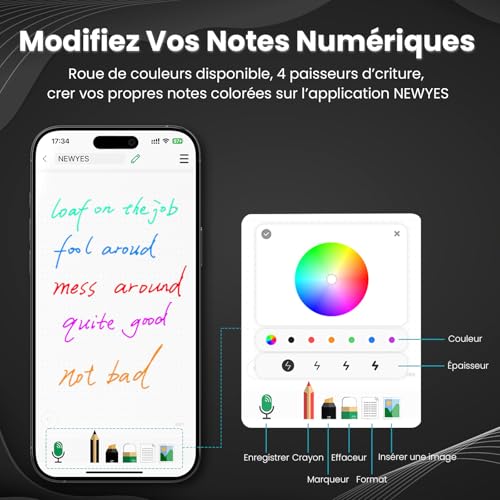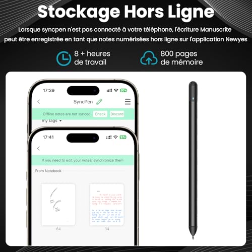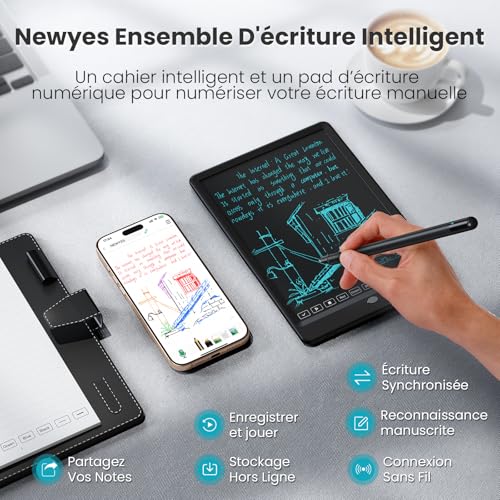 Synchronisation en temps réel : écrivez ou dessinez sur le bloc-notes ou le tableau d’écriture, et transférez instantanément du contenu sur votre appareil via l’application « NEWYES Note » – Parfait pour le travail numérique et les processus créatifs Reconnaissance de texte intelligente : l’application « NEWYES Note » détecte 73 langues ainsi que les caractères mathématiques, musicaux et chimiques et convertit l’écriture manuscrite en texte modifiable avec plus de 99,5 % de précision Fonctionnalités d’application polyvalentes : enregistrement, lecture, catégorisation, organisation, fonction de recherche et partage facile, gardez une trace de vos notes numériques à tout moment Deux modes de fonctionnement : mode en ligne et hors ligne. En mode hors ligne, certaines fonctions de l’application sont limitées, mais l’utilisation du stylet de synchronisation est complètement conservée Batterie longue durée : seulement 2 heures de temps de charge pour plus de 8 heures d’utilisation continue – Parfait pour les réunions, les conférences ou les travaux créatifs tout au long de la journée