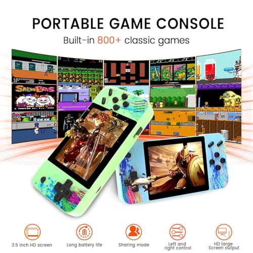 800 jeux rétro : Le Pocket Gamer 2025 offre 800 jeux intégrés de Puzzle, Action, Aventure, Casual et d’autres genres pour tous. Le Pocket Gamer aide les joueurs à améliorer leurs compétences et leurs capacités de réflexion tout en jouant à des jeux ! Grand écran de 3,5 pouces : Avec un écran haute définition de 3,5 pouces et des haut-parleurs de grande taille, la console offre une expérience de jeu exceptionnelle. L’écran haute définition de 3,5 pouces protège non seulement vos yeux, mais offre également de meilleurs effets visuels que l’écran haute définition Ips de 3,0 pouces. Design Excellent Et Sympathique : La Console De Jeu Portable Pour Deux Joueurs Est Compacte Et Légère, Facile A Transporter. Les jeux sont simples et amusants, idéaux pour se déconnecter de la vie quotidienne. Il nous apporte du plaisir et du divertissement sans fin, où que nous allions ! Longue durée de vie : Notre console de jeux vidéo pour deux joueurs peut jouer jusqu’à 3 heures sans interruption, vous permettant ainsi qu’à votre partenaire de jouer sans interruption, parfait pour les jeux portables en plein air ! Cadeau absolument génial : La console de jeu de poche est un cadeau idéal pour les adolescents et même les adultes. La surprise parfaite pour les fêtes d’anniversaire, Pâques, Noël !