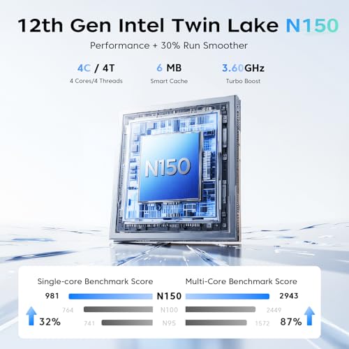 【Écran 18,5″ Full HD IPS à la clarté immersive】Profitez de visuels nets et vibrants sur son écran IPS généreux de 18,5 pouces, avec une résolution de 1920 × 1080 et une fréquence de rafraîchissement de 60 Hz. Idéal pour le multitâche, le streaming de films ou la retouche photo, l’écran offre de grands angles de vision de 180° et une précision de couleurs impressionnante pour une expérience visuelle vraiment captivante. 【Processeur Twin Lake-N150 : Vitesse et efficacité】Le TIVIQUE AX18 gère les tâches quotidiennes avec grâce grâce au processeur Intel N150 (jusqu’à 3,6 GHz), offrant des performances jusqu’à 20 % plus rapides que les processeurs N95/N97. Que vous travailliez au bureau, profitiez de jeux légers ou alterniez entre les applications, bénéficiez d’une performance fluide et réactive. 【16 Go de RAM DDR4 + 512 Go de SSD : Prêt pour demain】Faites-en plus grâce à des lancements d’applications plus rapides et un multitâche seamless, grâce aux 16 Go de RAM DDR4 (ultérieurement pouvant être augmentée à 4800 MHz) et au SSD de 512 Go. Étendez votre stockage jusqu’à 2 To pour tous vos jeux, films et projets — et utilisez la fente Micro SD pour des transferts de fichiers rapides et faciles. 【Autonomie toute la journée pour une productivité nomade】Avec sa batterie lithium-polymère de 8000 mAh (60,8 Wh), l’AX18 vous accompagne pendant les longs trajets, les sessions en café ou les réunions consécutives. Rechargez-la rapidement avec l’adaptateur 40W inclus pour être toujours prêt à partir. 【Connectivité de niveau pro pour le travail et les jeux】Connectez facilement des écrans, des périphériques et des stockages externes via 3 ports USB 3.2, HDMI et une connexion Type-C. Le Wi-Fi double bande 802.11ac et le Bluetooth 5.0 assurent une diffusion stable et un appairage sans effort avec vos appareils sans-fil préférés. 【Expérience multimédia améliorée】Deux haut-parleurs de 1 W offrent un audio clair et équilibré pour les appels vidéo et la musique, tandis que le microphone numérique garantit que votre voix est transmise avec netteté. Le pavé tactile tout-en-un réactif et la webcam intégrée de 1 MP complètent une configuration fluide et conviviale. Veuillez vous assurer d’une connexion Internet stable pendant les mises à jour du système et éviter d’interrompre le processus pour prévenir tout gel ou erreur.