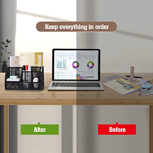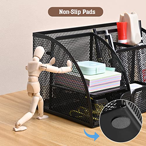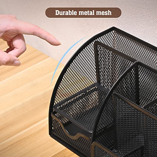 【Gain de place】Organisateur bureau en maille métallique offre une meilleure façon d’organiser votre bureau et de gagner de la place grâce à ses différents compartiments et un tiroir. Avec cet organisateur, vous pouvez dire adieu à un bureau désordonné et répondre à vos besoins de stockage quotidiens. 【Matériau de haute qualité】Rangement bureau est fabriqué en maille métallique de haute qualité et non déformable. La surface de la boîte à stylos est revêtue d’un revêtement étanche et résistant à la rouille, très durable. Le bord du porte-stylos est lisse et n’endommage pas vos mains. 【Polyvalent】Organisateur de bureau en maille métallique peut être utilisé pour ranger des stylos, des crayons, des trombones, des ciseaux, des agrafeuses, des cahiers, des ordinateurs, des téléphones, du maquillage, des clés et d’autres petits objets. Avec cet organisateur de bureau, votre bureau reste toujours propre et bien rangé. 【Compact et élégant】Le design compact de l’organisateur de bureau en maille métallique vous permet de l’utiliser à différents endroits. Il convient très bien à votre bureau, votre école et votre maison. Il peut être utilisé pour organiser et trier différents petits objets tels que des clés, des stylos, des trombones, des agrafes, des téléphones, des portefeuilles, des bijoux et du maquillage, et ajoute de la propreté et de l’élégance à votre bureau. 【Conception soigneuse pour la protection】Le fond du porte-stylos est équipé de 4 coussinets doux pour éviter les rayures sur le bureau et assurer une assise stable sur le bureau. De plus, le bord inférieur protège contre les blessures lors de l’entrée et de la sortie d’objets.