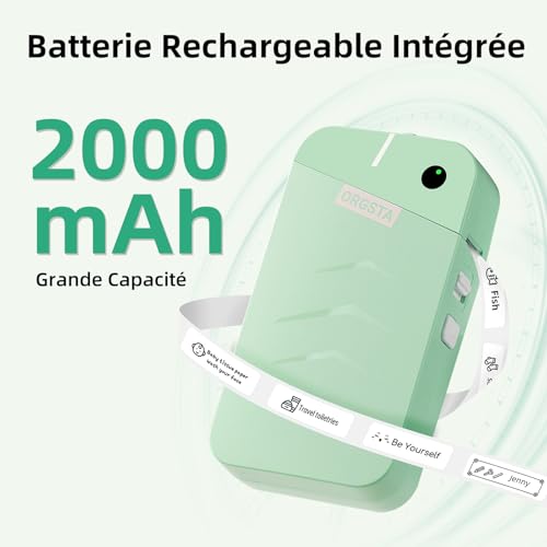 ORGSTA S001 Étiqueteuse Bluetooth Portable Imprimante d’Étiquettes Autocollantes 2000 mAh Mini Étiquette pour Maison, Bureau, École, Cuisine personnalisées, Compatible iOS et Android