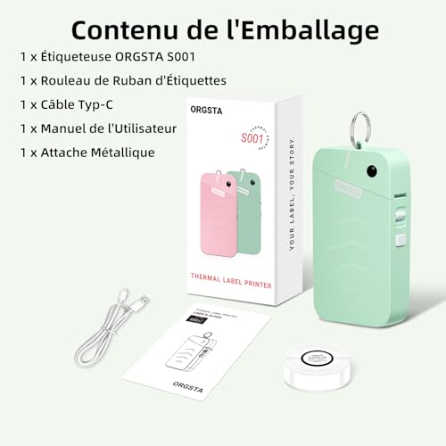 Compact et prêt à imprimer partout —— Avec seulement 13,5 cm x 7 cm x 3 cm, l’ORGSTA 001 est deux fois plus petit que les modèles classiques. Notre imprimante portable glisse facilement dans les poches ou étuis de téléphone. Grâce au Bluetooth et à son alimentation par batterie, elle permet une édition fluide et une impression instantanée où que vous trouviez l’inspiration. Batterie haute capacité de 2000 mAh —— La combinaison de cette batterie performante et de la faible consommation énergétique de l’imprimante thermique offre une “batterie compacte pour un usage prolongé”. Imprimez instantanément en entrepôt, à l’école, en bibliothèque, en classe, dans les food-trucks, sur les marchés, à l’hôtel, à l’aéroport ou en voyage. 203 ppp et vitesse d’impression de 15 mm/s —— Des impressions d’une clarté cristalline pour documents quotidiens : notes, listes, étiquettes nominatives et reçus. Idéal pour usage domestique et petites entreprises, avec une vitesse d’impression thermique moyenne garantissant des détails précis sur chaque étiquette ou mémo. Fonctions d’édition variées via l’application —— Plus de 190 modèles prêts à l’emploi et 300+ symboles permettent de concevoir et créer des étiquettes rapidement et simplement. Impression de documents, contenus web, multiples images, textes, tableaux, symboles, horodatages, écriture manuscrite, codes-barres, QR codes, OCR, etc. Impression fiable, traitement rapide —— La machine d’impression portable S001 produit des impressions monochromes – pour des designs en couleur, utilisez des rubans d’étiquettes à motifs colorés.