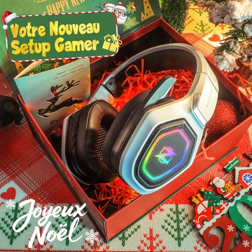 Amazing Stable Connection-Quick Access to Games : Bénéficiez d’un son de jeu en temps réel grâce à notre connexion sans fil USB et Type-C à très faible latence de 2,4 GHz. Avec moins de 30 ms de retard, vous pouvez profiter d’un fonctionnement plus fluide et garder une longueur d’avance sur la concurrence, afin de profiter d’une. Liberté totale sans fil : Jouez plus longtemps avec jusqu’à 40 heures d’autonomie (à 60 % du volume). La transmission audio sans fil 2,4G et une portée de 10 m vous offrent une liberté de mouvement. Jouez en stéréo sur PS5, PS4,PC et mobile. Communication de jeu – Meilleures basses et précision : Le pilote de 50 mm plus 2,4G sans fil sans perte vous transporte dans le monde du jeu, vous permettant d’entendre chaque étape critique, recharge ou voix dans Fortnite, Call of Duty, The Legend of Zelda et RPG, de sorte que vous ne manquerez jamais une étape ou un coup pendant le jeu. Vous serez complètement émerveillé par la portée, la précision et la qualité audio dont vos oreilles ont fait l’expérience. Confort supérieur : Conception flexible avec bandeau réglable et oreillettes en mousse protéinée à mémoire de forme pour une expérience plus confortable pendant les longues sessions de jeu ; L’éclairage RGB cool ajoute un peu de style à votre configuration de jeu. Bluetooth ne peut pas prendre en charge directement les PS5, PS4, PC, un adaptateur Bluetooth USB supplémentaire est nécessaire (non inclus). Il est recommandé d’utiliser le mode 2.4G, qui permet une connexion facile et étonnante. Compatibilité multiplateforme : Aucun pilote ou téléchargement requis, simplement Plug & Play, s’adapter à une multitude d’appareils. Mode sans fil 2,4G pour PS4, PS5, PC, appareils mobiles ; mode Bluetooth pour Mac, ordinateur portable, etc.Bluetooth ne peut pas prendre en charge directement les PS5, PS4, PC, un adaptateur Bluetooth USB supplémentaire est nécessaire (non inclus). Il est recommandé d’utiliser le mode 2.4G, qui permet une connexion facile et étonnante.