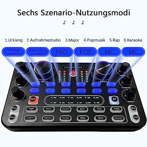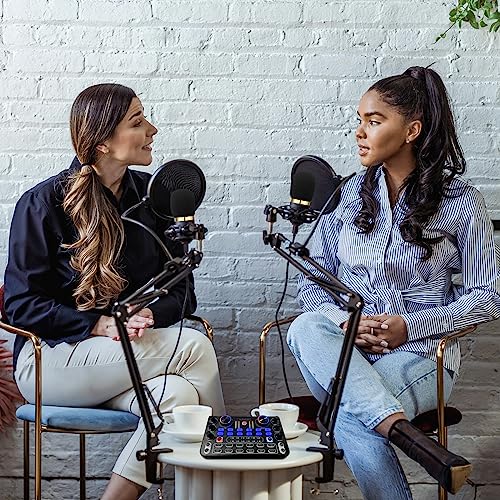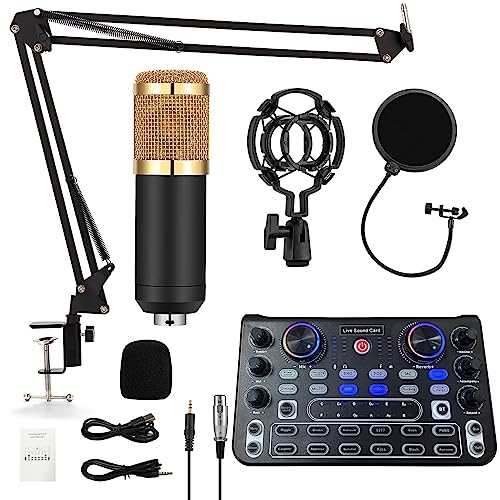 【Ensemble Podcast Ultime】Cet ensemble comprend le microphone BM-800, un bras de microphone stable et réglable, une suspension antivibratoire, un filtre anti-pop, un pare-brise anti-vent, un câble d’alimentation ainsi qu’une carte son nouvellement conçue. Le traitement numérique du signal audio est stable et clair grâce à la puce de traitement intelligent DSP. Le studio est équipé d’une interface audio tout-en-un pour répondre à tous vos besoins. 【Bras de Microphone Robuste】Le microphone est construit en métal pour protéger l’appareil et la structure interne. Ce kit de microphone de podcast inclut un bras de variable en alliage d’aluminium, pliable et facile à transporter avec une rotation à 360 degrés pour une meilleure prise de son enregistrée. 【Mixeur Audio Professionnel】Prend en charge l’entrée d’alimentation fantôme 48V du microphone, compatible avec la diffusion en direct à double téléphone, le double microphone et le mélangeur mobile pour ordinateur. Le mixeur propose des options d’accompagnement, de réverbération, d’effets, de monitoring et d’enregistrement, le tout contrôlé indépendamment. Avec 8 modes de scène et 14 effets audio pour créer et enrichir votre contenu. Compatible avec Android, IOS. 【Excellente Qualité Audio】Le microphone à condensateur S6 a été conçu avec les dernières technologies professionnelles pour un enregistrement cristallin. Le rapport signal/bruit est élevé ce qui garantit un enregistrement sans distorsion. La directivité cardioïde pour une capture plus précise et s’adapte parfaitement à l’enregistrement de podcasts, de chant et autres productions vocales. 【Garantie de satisfaction client à 100%】Si vous rencontrez des problèmes avec notre produit, veuillez nous contacter dès que possible. Nous mettons à votre disposition une assistance professionnelle en continu pour vous aider à résoudre les problèmes rencontrés dans les 12 heures.