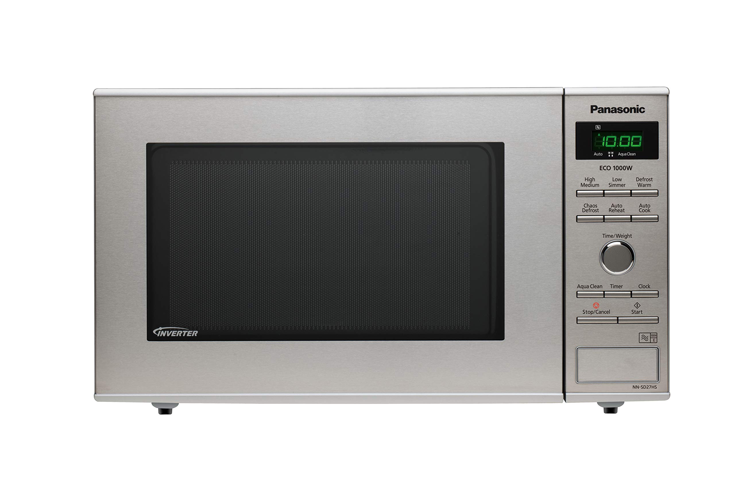 Panasonic NN-SD27HSUPG Four Micro-Ondes Technologie Inverter Plateau Tournant en Verre, 23L, 1000W, 10 Prog auto, Décongélation Chaos, 6 Puissances, Minuterie, Affichage LED, Acier Inoxydable Argent