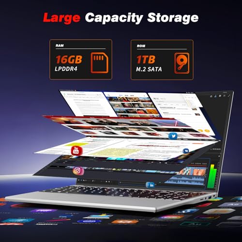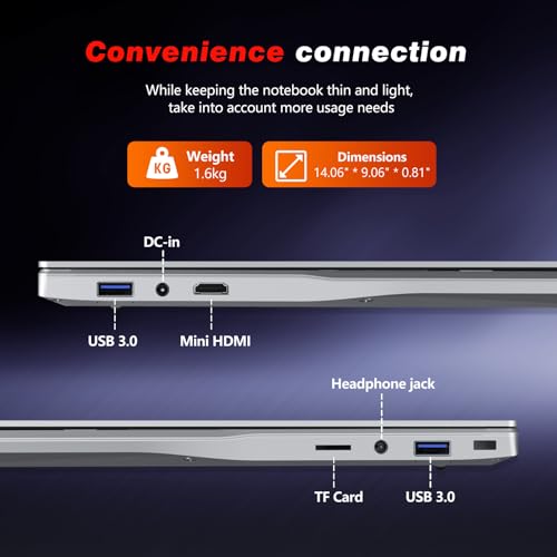 【Processeur Hautes Performances: Celeron N5095】Cet ordinateur portable de 15,6 pouces est équipé d’un puissant processeur N5095 et du système d’exploitation Win 11 pour une expérience utilisateur optimale. Le processeur Celeron N5095, quatre cœurs et quatre threads de traitement rapide, avec une fréquence allant jusqu’à 2,9 GHz, offre une excellente puissance de calcul et une gestion énergétique efficace. Il réagit rapidement à vos instructions d’utilisation, réduisant ainsi la consommation d’énergie tout en garantissant des performances élevées. Le processeur Celeron N95 est comparable aux Core i3/i5/i7 en termes de paramètres et de performances. 【Grand écran : ordinateur portable 15,6 pouces】L’écran IPS FHD de 15,6 pouces offre une résolution de 1920 x 1080. Grâce à son cadre ultra-fin, le rapport écran/corps dépasse 90 %, et le format d’image classique de 16:9 élargit considérablement le champ de vision. La technologie IPS garantit un angle de vision ultra-large de 178°, pour une image magnifique, sans dominante de couleur, sous tous les angles. La charnière flexible s’ouvre et se ferme à 180 degrés pour s’adapter à toutes les situations. 【Grande mémoire : 16 Go de RAM LPDDR4 + 1To de SSD】Cet ordinateur portable de 15,6 pouces est équipé de 16 Go de mémoire vive (RAM) haute vitesse et d’un disque SSD grande capacité (SSD) de 1To. Vous pouvez ouvrir simultanément plusieurs applications, telles que des navigateurs, des logiciels bureautiques, des outils de conception, etc., sans aucun décalage. Le SSD de 1To offre non seulement des vitesses de lecture et d’écriture rapides, mais vous permet également de stocker des fichiers volumineux, des photos, des vidéos, etc. sans vous soucier du manque d’espace. 【Connexion pratique et batterie de grande capacité】Cet ordinateur portable de 15,6 pouces prend en charge le déverrouillage par empreinte digitale et un clavier rétroéclairé. Il dispose de nombreux ports pratiques pour répondre à vos besoins en matière de périphériques externes, notamment un mini-HDMI, deux ports USB 3.0, un emplacement pour carte TF, une prise casque 3,5 mm et un bloc d’alimentation CC. Il est également équipé d’une batterie de grande capacité pour une longue durée de vie. 【Système d’exploitation Win 11, Déverrouillage Par Empreinte Digitale et Clavier Rétroéclairé. 】L’ordinateur portable Win 11 est doté d’un clavier rétroéclairé, vous permettant de taper confortablement dans l’obscurité ou la nuit. Vous pouvez utiliser les touches FN+F5 pour régler la luminosité. Le pavé tactile, large et confortable, offre également une fonction de déverrouillage par empreinte digitale, vous permettant de vous connecter à l’pc portable d’une simple pression du doigt, pour plus de sécurité et de commodité. Plus besoin de mémoriser ni de saisir de mots de passe, la saisie et la navigation sont simplifiées et sécurisées. 【Service et Assistance】Cet ordinateur portable 15,6 pouces bénéficie d’une garantie de 2 ans et d’un service client à vie. Pour toute question ou tout problème de qualité, n’hésitez pas à nous contacter. (Le clavier est un QWERTY standard, et des autocollants/membranes pour clavier allemand, français, espagnol et italien sont inclus dans l’emballage. Vous pouvez choisir la langue d’utilisation de l’ordinateur portable.)