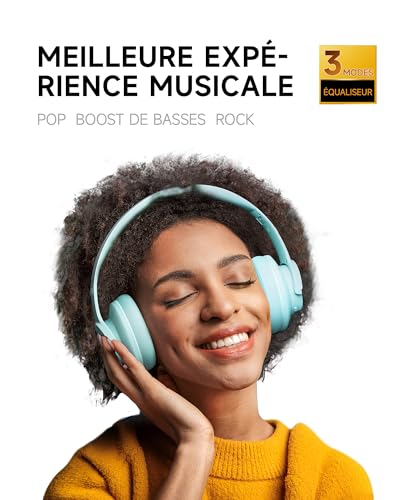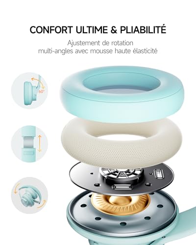 Pilote de 40 mm et 3 modes musicaux : les écouteurs Bluetooth Picun B8 sont conçus pour les audiophiles, équipés de deux unités de son dynamique de 40 mm et de 3 modes EQ, vous offrant une qualité sonore stéréo haute définition tout en équilibrant les basses et l’amélioration des aigus moyens à aigus plus en détail. Appuyez simplement sur le bouton EQ deux fois pour passer entre les modes Pop/Bass Boost/Rock et profitez de votre musique 120 heures de musique : défiez 30 jours sans charger Les écouteurs Bluetooth sans fil Picun ont une batterie intégrée de 1000 mAh qui peut jouer en continu plus de 120 heures après une charge complète. Écouter de la musique pendant 4 heures par jour permet 30 jours sans charge, ce qui les rend parfaits pour les voyages, l’école, le fitness, les déplacements, regarder des films, jouer à des jeux, etc., évitant ainsi de trouver des câbles de charge partout. (Appuyez 3 fois sur le bouton d’alimentation pour allumer/éteindre le mode faible latence.) Confortable et pliable : nos écouteurs Bluetooth sont fabriqués en cuir synthétique respectueux de la peau et en éponge hautement élastique, offrant un port respirant et confortable pendant une longue période. Le bandeau réglable et le design rotatif à 60° du casque Bluetooth rendent les cache-oreilles plus adaptés à la forme de votre tête, adaptés à tous les groupes d’âge, et le cadeau parfait pour la rentrée scolaire, Noël, la Saint-Valentin, etc. Il y a 4 couleurs disponibles pour les écouteurs sans fil pour répondre à vos besoins de mode. BT 5.3 et appels mains libres : équipé de la dernière puce Bluetooth 5.3, le casque Bluetooth Picun B8 a une portée de transmission plus rapide et plus stable, jusqu’à 10 m. Doté d’un contrôle tactile unique et d’un microphone intégré, nos écouteurs sans fil sont faciles à utiliser et prennent en charge les appels mains libres. (Appuyez brièvement une fois pour répondre, appuyez brièvement trois fois pour réveiller/éteindre l’assistant vocal, appuyez trois secondes pour rejeter l’appel.) Support à vie : dans la boîte, vous trouverez un casque pliable avec basses profondes, un câble audio de 3,5 mm, un câble de charge USB et un manuel de l’utilisateur (français non garanti). Picun promet de fournir une garantie de remboursement d’un an et une garantie de deux ans, ainsi qu’un support utilisateur sans soucis à vie. Si vous avez des questions sur le produit, n’hésitez pas à nous contacter et nous vous répondrons dans les 12 heures.