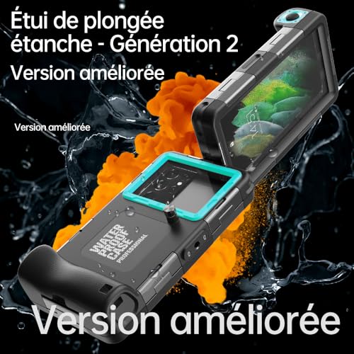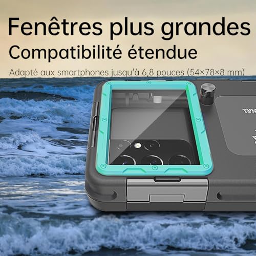 Compatible avec la plupart des smartphones : le boîtier de plongée sous-marin est adapté aux smartphones de 4,7 à 6,9 pouces. Il est compatible avec les derniers modèles d’iPhone, y compris iPhone 17 Pro Max, 17 Pro, 17 Air, 17, iPhone 16 Pro Max, 16 Pro, 16 Plus, 16, 16e, iPhone 15 Pro Max, 15 Pro, 15 Plus, 15, 14 Pro Max, 14 Pro, 14 Plus, 14. 13 Pro Max. 13 Pro/ 13 mini/ 13, Samsung Galaxy S25 Ultra/ S25 Plus/ S25/ S24 Ultra/ S24 Plus/ S24/ S23 Ultra/ S23 Plus/ S23/ S22 Ultra/ S22 Plus/ S22/ A17/ A16/ A26/ A33 6/A56. S24 FE/ S25 FE, Google, LG, Motorola et autres modèles. Protection professionnelle contre l’eau jusqu’à 15 m de profondeur : le boîtier offre une excellente étanchéité et a été testé plus de 1000 fois. Il permet des plongées jusqu’à une profondeur de 15 mètres jusqu’à 60 minutes sans fuite. Avant la plongée, nous vous recommandons d’allumer l’appareil photo de votre téléphone pour prendre des photos et des vidéos sans effort. Protection complète à 100 % : équipée d’une fermeture à boucle en métal, le boîtier offre une meilleure étanchéité et une grande fiabilité. L’étanchéité de chaque boîtier est testée avant la livraison. Pour une sécurité maximale, vous pouvez effectuer un test d’étanchéité supplémentaire avant utilisation. Images et vidéos claires sous l’eau : à l’arrière du boîtier se trouve une fenêtre spéciale en film de protection transparent qui ne bloque pas la zone de l’objectif de l’appareil photo de votre téléphone. Cela vous permet de prendre des photos et des vidéos sous-marines nettes et de capturer parfaitement chaque scène. Installation facile et service utile : veuillez lire attentivement les instructions d’installation avant d’utiliser le boîtier. Il a été spécialement conçu pour les sports nautiques et les activités sous-marines et n’est pas conçu pour un usage quotidien. L’écran tactile peut ne pas fonctionner sous l’eau en raison de la pression, vous devez donc désactiver l’économiseur d’écran ou vous assurer que votre téléphone est en mode caméra. Pour toute question, notre service client est toujours disponible.