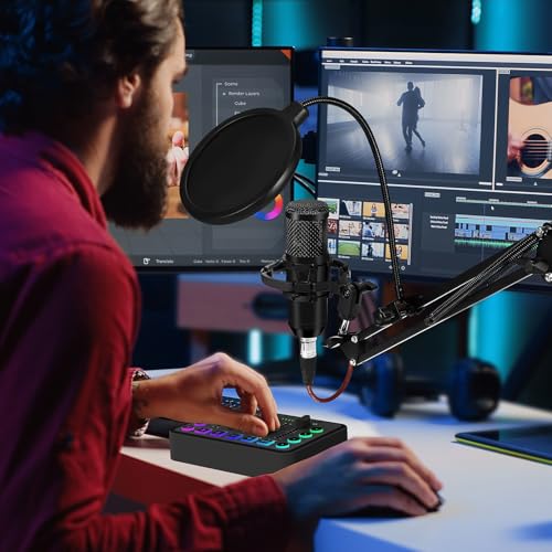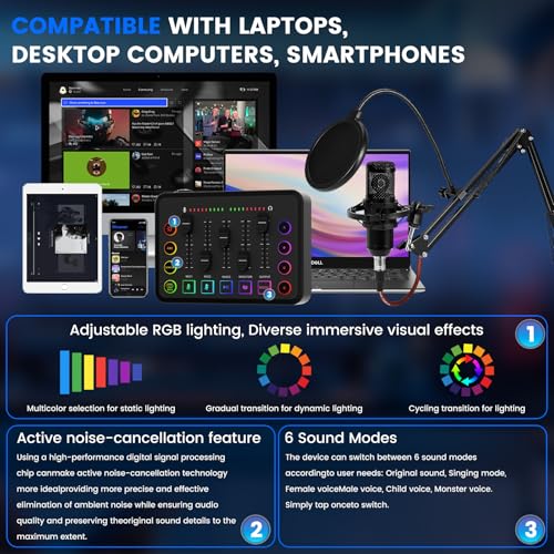 Kit d’équipement podcast : le kit d’équipement podcast comprend une carte son live, un microphone à condensateur XLR, une protection anti-éclaboussures à double couche, un pied à potence réglable, un support amortisseur, un capuchon en mousse résistant au vent et un câble d’alimentation. Le mélangeur vous permet de régler le son et les effets sonores, idéal pour le streaming en direct, l’enregistrement, le chant et l’enregistrement de la voix de jeu Conception intégrée : Cet appareil intègre des fonctions essentielles pour le streaming en direct. Il permet une surveillance audio en temps réel via des écouteurs, permettant à l’utilisateur de basculer librement entre les hautes, moyennes et basses fréquences et d’optimiser la musique de fond. De plus, l’appareil est équipé de quatre boutons d’enregistrement personnalisables, rendant les interactions avec les fans, les spectateurs ou les amis plus engageantes. Ces fonctionnalités rendront les vidéos enregistrées ou les diffusions en direct encore plus excitantes. Simple et facile à utiliser : Même les débutants peuvent facilement commencer avec une configuration rapide et pratique du support et du microphone. Il suffit de connecter les câbles de la carte son à votre ordinateur ou smartphone, et vous pouvez commencer à l’utiliser immédiatement. De plus, l’appareil prend en charge une utilisation en ligne double, améliorant l’expérience interactive pour deux utilisateurs simultanément. Fonctionnalités amusantes : Équipé de 6 modes de changement de voix, vous permettant de passer facilement entre différents effets sonores, notamment la voix originale, le mode chant, la voix féminine, la voix masculine, la voix d’enfant et la voix de monstre. Une simple pression courte permet un basculement rapide, ajoutant du plaisir à l’expérience utilisateur. Compatibilité puissante : Compatible avec les ordinateurs portables, les ordinateurs de bureau, les smartphones et les tablettes, peut être connecté via une interface 3,5 mm ou Type-C. Même si l’appareil ne prend pas en charge ces deux interfaces, un adaptateur de conversion de données est fourni pour vous assurer de ne pas avoir à vous soucier des problèmes de compatibilité lors de la connexion. Garantie de service : Nous effectuons un strict contrôle et inspection avant l’expédition pour garantir le bon fonctionnement des marchandises. Si vous rencontrez des problèmes après l’achat, n’hésitez pas à nous contacter, et nous vous fournirons la meilleure solution dans les 12 heures.