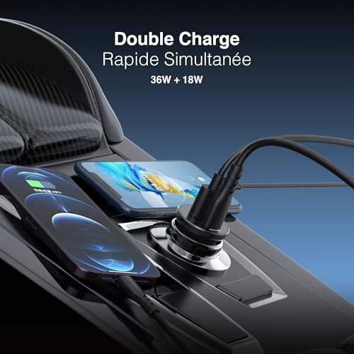 DOUBLE CHARGE SIMULTANÉE – 54W RÉELS – Le chargeur allume cigare double PORTENTUM permet de recharger deux appareils en même temps avec une puissance totale de 54W : USB-C PD 36W et USB-A QC 18W. CABLE HAUTE VITESSE INCLUS – Le charger allume cigare USB C PORTENTUM est livré avec un…