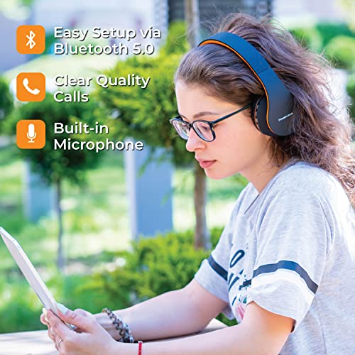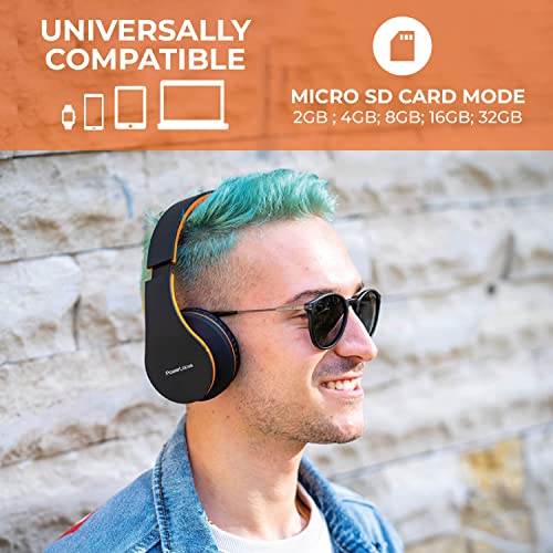 PowerLocus Casque Bluetooth – Casque Pliables avec Micro Intégré – Hi-Fi Stereo – Micro SD/TF, FM Radio – Pour iPhone/Android/iPad/Ordinateurs Portables (Orange)