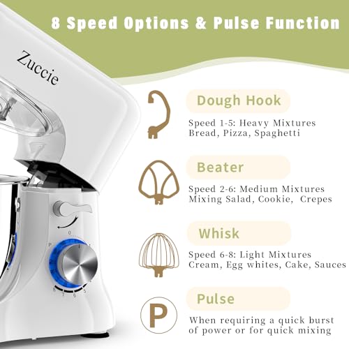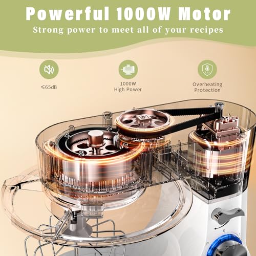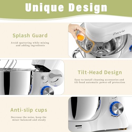 【1000W haute puissance】Machine de cuisson multifonctionnelle Zuccie, forte puissance de 1000W, efficacité de pétrissage élevée, formation rapide de film en 8-15 minutes. Utilisant le dernier moteur en cuivre pur 8830, faible perte, dissipation thermique rapide, faible bruit (moins de 65 dB), une machine peut avoir trois fonctions de pétrin/batteur/mélangeur. Qu’il s’agisse de pain, de pizza, de nouilles, de crème glacée ou de gâteau, il peut être fait facilement. 【Bol de grande capacité de 5,5 QT avec poignée】 Utilisez de l’acier inoxydable 304 de qualité alimentaire pour assurer la sécurité alimentaire. La grande capacité de 5,5 QT peut contenir 1000 g de farine, répondant aux besoins de 3 à 6 personnes de la famille, et peut être utilisée à des fins commerciales. Équipé d’un couvercle transparent, vous pouvez non seulement voir la progression de la production alimentaire pendant l’utilisation, mais également éviter les éclaboussures d’aliments 【Engrenage réglable 8 + P】 Vous avez le choix entre 6 vitesses différentes, adaptées à différentes préparations alimentaires. Niveau 1-5, adapté au pétrissage de la pâte; niveau 2-6, adapté au mélange salade/beurre ; niveau 6-8, adapté pour battre les blancs d’œufs et la crème. La fonction d’impulsion du fichier P peut rendre le goût du pain et du beurre plus délicat et ferme, et la trajectoire planétaire peut être envoyée plus uniformément à 360 degrés. 【Tête inclinable et design d’apparence】Le robot culinaire Zuccie avec base lestée et 4 pieds antidérapants est stable sans glisser même à grande vitesse. La conception à tête inclinée vous permet d’ajouter facilement des ingrédients au bol mélangeur et est facile à installer et à retirer. 【Excellent service après-vente】Tous les produits Zuccie sont certifiés CE/ROHS. Si vous achetez notre produit, nous vous fournirons 1 mois de retour gratuit et 3 ans de garantie, vous rencontrez des problèmes de qualité ou d’utilisation à l’avenir, vous pouvez contacter notre service clientèle à tout moment.