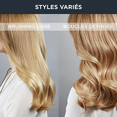 UN BRUSHING RAPIDE DIGNE D’UN SALON DE COIFFURE : moteur AC professionnel combiné à une puissance de 2200W pour un séchage 2 fois plus rapide*. Le flux d’air puissant et concentré allant jusqu’à 126 km/h offre une maîtrise parfaite pour la mise en forme des cheveux ; *Test de perception, vs sèche-cheveux habituel, 30 volontaires, 1 mois, France 2021 DES CHEVEUX DOUX ET BRILLANTS : grâce au système ionique qui délivre des millions d’ions pour réduire l’électricité statique et les frisottis et rend les cheveux doux et brillants SET D’ACCESSOIRES : concentrateur ultra fin de 6 mm pour un brushing lisse parfait et diffuseur pour augmenter le volume naturel des cheveux (idéal sur cheveux bouclés) REGLAGES ADAPTES : 3 réglages de température et 2 réglages de vitesse pour adapter le flux d’air et la température pendant votre séance de coiffage Réparabilité 10 ans, Garantie 2 ans COIFFURE LONGUE TENUE : touche air froid qui fixe la coiffure pour un résultat longue durée PRODUIT ROBUSTE ET DURABLE : des performances de qualité professionnelle avec un moteur AC qui dure 2 fois plus longtemps qu’un moteur DC classique, pour un produit durable sur lequel vous pouvez compter jour après jour NETTOYAGE FACILE : la grille arrière amovible permet un nettoyage rapide et facile tout en prolongeant la durée de vie de votre appareil PRATICITE : le long cordon d’alimentation de 1,8 m assure une plus grande liberté de mouvement et un confort d’utilisation optimal LIVRE AVEC : 1 concentrateur de 6 mm et 1 diffuseur
