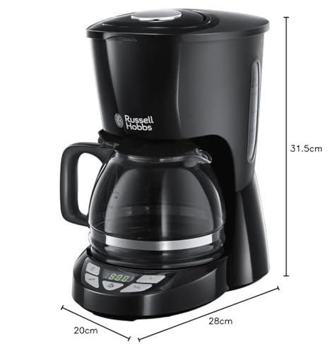 Russell Hobbs Cafetière filtre [Programmable, Technologie WhirlTech pour extraction & arôme optimaux] Textures (10 tasses, verseuse en verre 1,25L, plaque chaude, auto-off) 22620-56