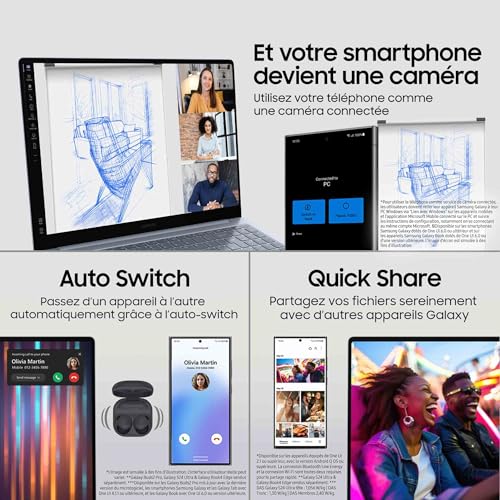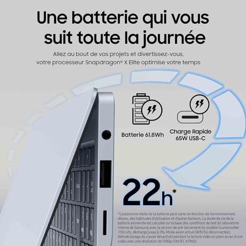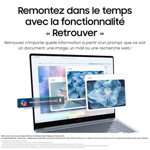 Productivité améliorée grâce à l’IA : le Galaxy Book4 Edge offre des performances exceptionnelles, boostées par l’IA. Il est équipé d’un processeur Snapdragon X Elite et d’un NPU pour que vous puissiez créer, travailler et vous divertir en toute tranquillité¹ Un grand écran tactile, lumineux et sans reflet Dynamic AMOLED 2X : profitez de l’écran captivant de 16 pouces du Galaxy Book4 Edge pour profiter de vos divertissements favoris et travailler confortablement. De plus, l’émission réduite de lumière bleue offre plus de confort à vos yeux² ³ ⁴ Les ports intégrés vous permettent de connecter plusieurs appareils à votre Galaxy Book4 Edge facilement et rapidement. Faites des transferts de données à la vitesse de l’éclair grâce aux 2 ports USB 4.0 et connectez vous à un écran facilement via le port HDMI 2.1 (4K à 60Hz). Enfin, le port USB 3.2 Type A, l’emplacement pour cartes MicroSD et l’entrée pour casque/micro vous offrent toute la connectique dont vous avez besoin⁵ ⁶ Soyez productif partout où vous allez : léger et portable avec jusqu’à 22⁷ heures d’autonomie ²⁷ ²⁸ ²⁹, le Galaxy Book4 Edge est idéal pour rester productif même en déplacement. Utilisez des applications d’intelligence artificielle même sans connexion internet Galaxy AI est là : le Galaxy Book4 Edge dispose d’une IA intégrée fonctionnant même sans connexion internet. Accédez plus facilement aux nouvelles fonctionnalités de l’IA grâce à la touche Copilot