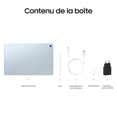 Design iconique : Dotées d’un S Pen et d’un design ultra-fin, léger et résistant, les Galaxy Tab S10 FE et Tab S10 FE+ s’intégrent parfaitement à votre quotidien. Disponibles en Gris Anthracite, Argent et Bleu. ¹ Recherches simplifiées : Entourez, surlignez ou appuyez sur n’importe quelle image, vidéo ou texte à l’écran pour faire une recherche rapide grâce à Entourer pour chercher avec Google. Plus besoin de faire de captures d’écran ! ² Prêt pour l’aventure : Emportez l’écran 10,9″ de la tablette Tab S10 FE partout avec vous ou visez encore plus grand avec l’écran 13,1″ de la tablette Tab S10 FE+, certifiées IP68 pour résister à l’eau et à la poussière. ³ ¹⁰ Performance : Créez, travaillez et jouez grâce au processeur optimisé par l’IA. Passez d’un projet à un autre en toute fluidité, naviguez sans accroc et augmentez l’espace de stockage jusqu’à 2 To avec une carte microSD.⁹ ¹⁰ Fonctionnalités intelligentes : Appuyez sur la touche étoilée de votre Book Cover Keyboard (vendu séparément) pour accéder aux fonctionnalités IA et configurer votre assistant. Des difficultés en maths ? Écrivez l’équation avec le S Pen et le calculateur mathématique la résoudra pour vous. ¹¹ ¹²
