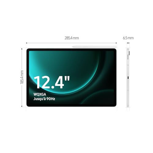 Design coloré : Exprimez votre personnalité avec la Galaxy Tab S9 FE et la Galaxy Tab S9 FE+, disponibles en Anthracite, Version FR, Vert d’eau, Version FR d’eau, Argent, Version FR ou Lavande, Version FR.¹ Profitez d’un grand écran pour regarder, créer et partager vos contenus : 10,9” pour la Tab S9 FE et 12,4” pour la Tab S9 FE+. La puissance créative du S Pen : dessinez et prenez des notes librement avec le S Pen inclus, de la même couleur que votre tablette. Vous serez bluffés par la sensation d’écriture comme sur du papier. ² ³ Regardez votre écran, même en extérieur : Vision Booster vous permet de voir clairement votre écran sous le soleil. Passez facilement de votre salon à votre terrasse grâce à l’adaptation du contraste et des couleurs pour des images toujours aussi claires⁴ ⁵ Des écrans ultra-fluides avec des mouvements plus vrais que nature : Les écrans des Galaxy Tab S9 FE et Tab S9 FE+ réduisent les émissions de lumière bleue et vous permettent de profiter d’un taux de rafraîchissement adaptatif allant jusqu’à 90 Hz pendant que vous regardez, scrollez ou éditez⁶ ⁷ Des tablettes robustes : Ne soyez jamais bridés dans votre élan créatif, où que vous soyez. Les Galaxy Tab S9 FE |Tab S9 FE+ vous accompagnent dans vos aventures les plus folles grâce à leur batterie longue durée et à leur résistance à l’eau et à la poussière (certification IP68).⁸ ⁹ ¹⁰ ¹¹ ¹² ¹³ ¹⁴ ¹⁵