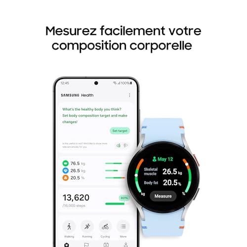 Disponible en trois couleurs : Noir, Or rose et Argent, avec de nouveaux bracelets assortis, la Galaxy Watch FE complète parfaitement votre style, que vous soyez en tenue décontractée, élégante ou sportive¹ ² L’analyse avancée de course vous aide non seulement à améliorer votre efficacité et vos performances, mais fournit également des informations pour prévenir les blessures, afin de réaliser de nouveaux records personnels² Grâce au système d’attache en un clic, changez de bracelet d’une simple pression. Faites votre choix parmi les différents bracelets disponibles et trouvez celui qui vous ressemble ! ² Le repos est essentiel pour une bonne hygiène de vie, et cela commence par la compréhension de vos habitudes de sommeil. La Galaxy Watch FE analyse vos habitudes de sommeil pour améliorer votre repos et votre bien-être² ³ ⁴ Contenu de la boîte : 1x Samsung Galaxy Watch FE, couleur Or Rose, socle de charge sans fil, chargeur secteur 25W (non compatible à date avec le câble de charge fourni) et manuel d’utilisation