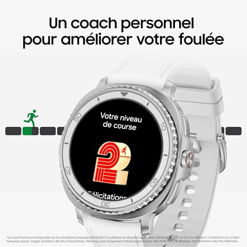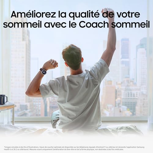 Design signature : Démarquez-vous avec le design intemporel et innovant de la Watch8 Classic accompagné par sa Couronne rotative iconique, son Bouton d’action et le nouveau Système d’attache dynamique pour un ajustement idéal.¹ ² IA sur Watch: Parlez à l’assistant personnel Gemini directement depuis votre poignet grâce à la reconnaissance vocale ou bénéficiez des conseils personnalisés de Galaxy AI.³ ⁴ Coach sommeil personnalisé : Analysez votre sommeil via votre fréquence cardiaque durant la nuit grâce au Suivi du sommeil. Recevez des conseils quotidiens pratiques et adaptés à vos besoins pour améliorer votre routine du coucher.⁵ ⁶ ⁷ ⁸ ⁹ ¹⁰ Coach running : Passez à la vitesse supérieure avec la Galaxy Watch8 Classic. Suivez un plan d’entraînement complet de plusieurs semaines en fonction de vos objectifs de course pour vous permettre de courir votre premier 5km, 10km, semi-marathon voire marathon ! Analysez en détail vos performances avec le Suivi d’entraînements.¹¹ Samsung Health : Suivez l’évolution de votre Indice Antioxydant pour connaître la qualité de votre mode de vie et de votre alimentation.²³ ²⁶