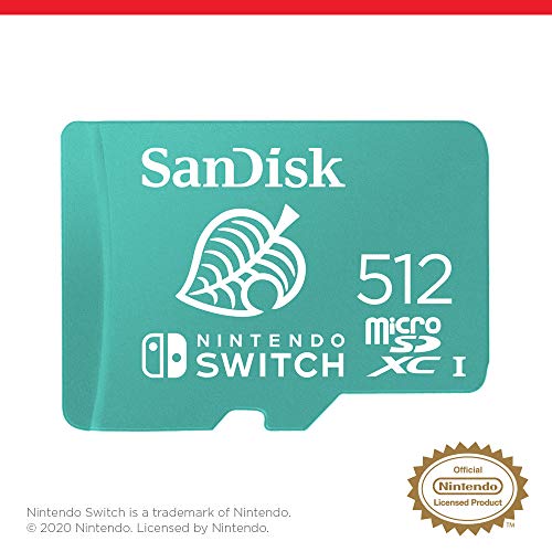 SanDisk microSDXC pour les consoles Nintendo Switch, Animal Crossing 512 Go, UHS-I Carte, jusqu’à 100 Mo/s, Produit sous licence Nintendo, Class 10, U3